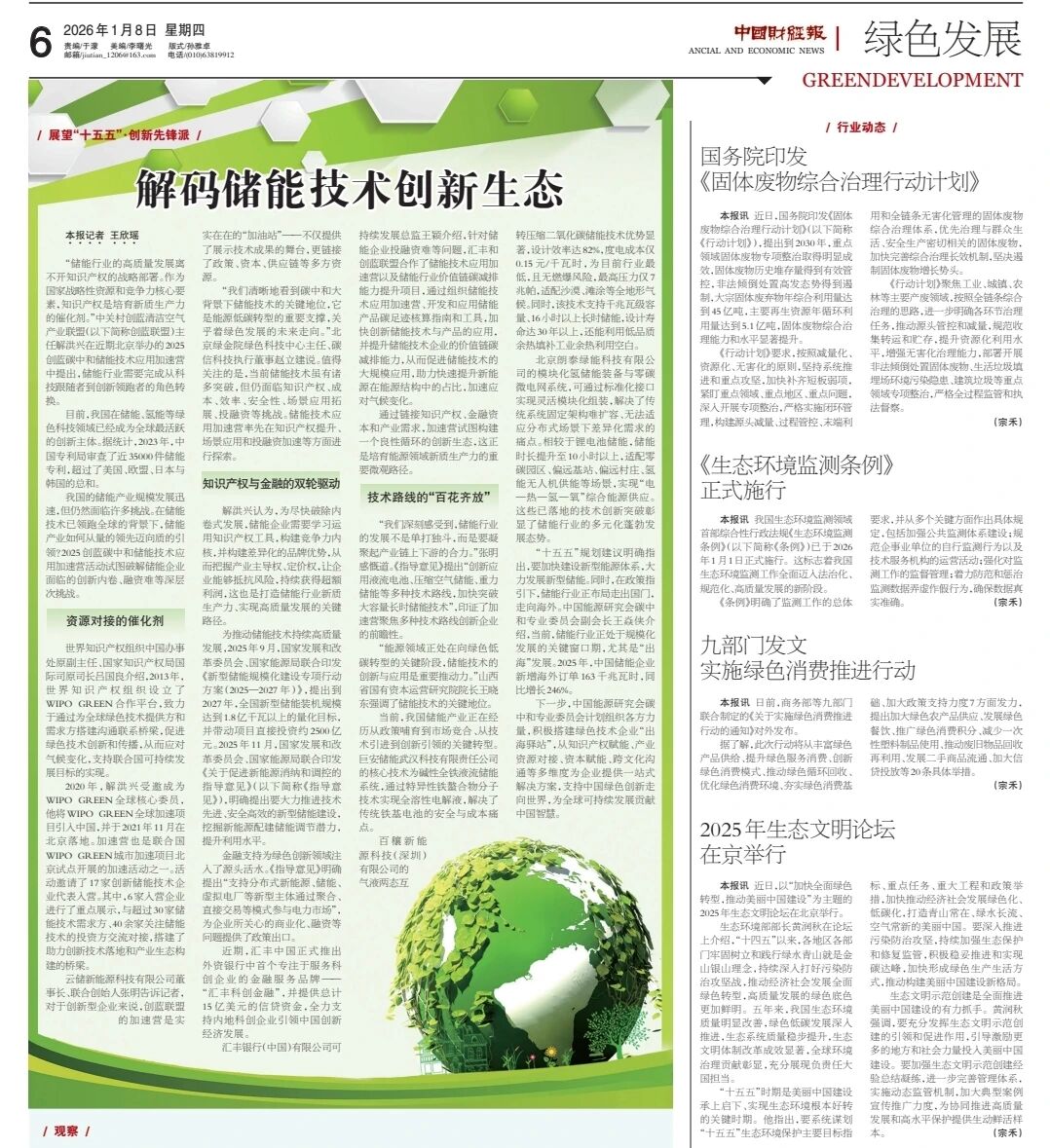 2026年1月8日,中国财经报就创蓝碳中和储能技术应用加速营进行了深度报道,以下为原文转载。